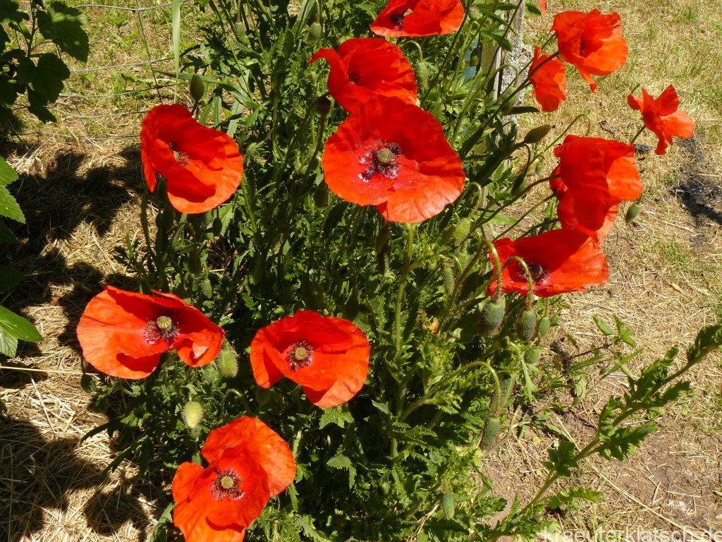 Ich setze neben meine Erdbeeren den Klatschmohn, so bemerken die Vögel nicht so schnell, dass man hier auch reife Früchte naschen kann.